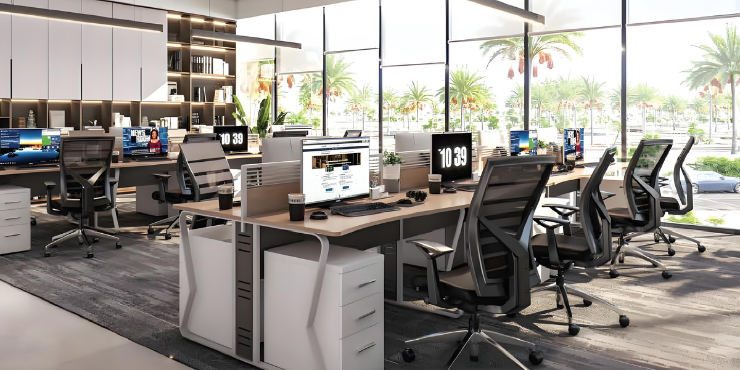 ويوفر هذا المكتب في طابق عالٍ رؤية واضحة قوية باتجاه برج خليفة، وهو ما يجعله مثاليًا لوضع تجاري راقٍ.