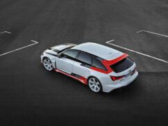 The new RS 6 Avant GT’s powertrain delivers 463 kilowatts (630 horsepower) and 850 Newton-meters of torque (fuel consumption urban and extra-urban in liters/100 km (62.1 miles): 12.7 – 12.2 (18.5 – 19.3 miles per US gallon) (according to the Worldwide Harmonized Light Vehicles Test Procedure), total CO₂ emissions in grams/km: 289 – 277 (465.1 – 445.8 g/mile) (according to the Worldwide Harmonized Light Vehicles Test Procedure)—an increase of 22 kilowatts (30 horsepower) and 50 Newton-meters compared to the base RS 6 Avant model (fuel consumption urban and extra-urban in liters/100 km (62.1 miles): 12.7 – 12.1 (18.5 – 19.4 miles per US gallon); total CO₂ emissions in grams/km: 289 – 276 (465.1 – 444.2 g/mile). The RS 6 Avant GT accelerates from 0 to 100 km/h (62 mph) in just 3.3 seconds—0.3 seconds faster than the RS 6 Avant. It reaches 200 km/h from a standstill in 11.5 seconds, 0.5 seconds quicker than its predecessor, with a top speed of 305 km/h (190 mph). The car comes standard with RS ceramic brakes.