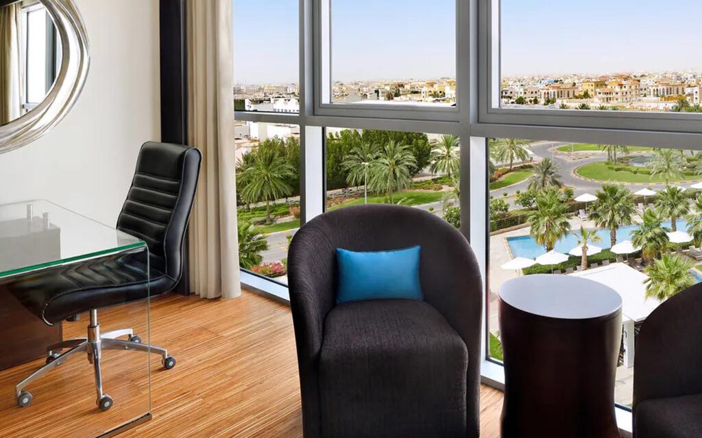 Please note that some rooms and suites offer views of the capital city, while others overlook the famous Al Fursan stadium. Confirm your preferred view before booking. Many rooms are also wheelchair-accessible and designed for guests with special needs. Smoking is prohibited in most rooms and suites.