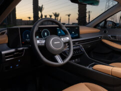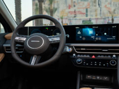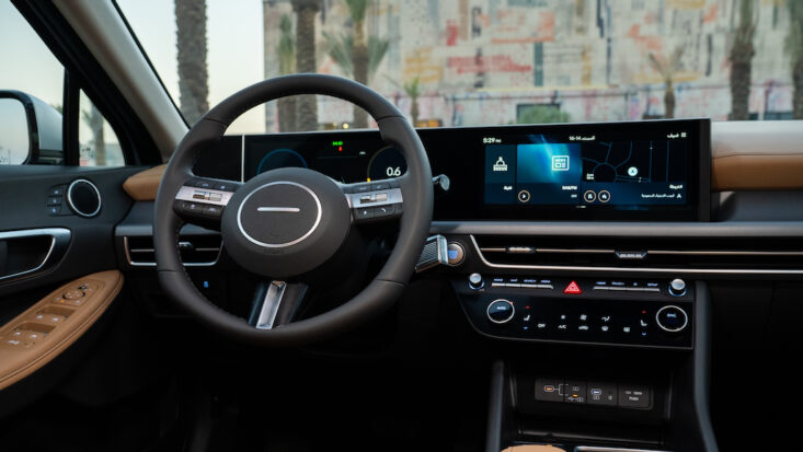 Inside, the new Sonata features a driver-centric interior with high-tech details tailored to modern lifestyles. The innovative floating cabin design creates a forward-looking atmosphere, complete with a three-spoke steering wheel, a curved panoramic display, and a touch-controlled climate control system.