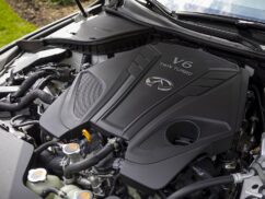 The 2022 Q60 establishes itself as a luxury coupe with exceptional performance, powered by a renowned V6 engine—three liters with twin turbochargers. All three trims—Luxe, Black Edition, and Sport Red 400—feature a seven-speed automatic transmission with manual shift capability via engine rev-matching technology for smooth gear transitions. The base models deliver 300 horsepower, while the Sport Red 400 offers an enhanced six-cylinder engine producing 400 horsepower.