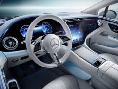 A ventilation strip spans the full width of the car’s upper section, remarkably slim in profile. Combined with the glass-like design of the MBUX Hyperscreen, this minimal form contributes to the highest levels of cabin sophistication. Notable features include turbine-style air vents that create a striking contrast between ultra-precise mechanics and the digital display world.