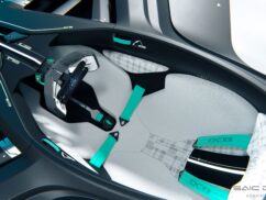 Inside, the EXE181’s cabin reflects its purpose-driven design, featuring a lightweight, compact structure built for high-speed straight-line performance. The front cockpit opens fully toward the front, while the seats pay homage to the classic British TARTAN design, blending traditional elements with modern aesthetics. Additionally, the car features a unique user interface (UI) inspired by aircraft cockpit consoles, including a seamless screen integrated into the steering wheel and a vertical head-up display (HUD) projected onto the windshield to enhance driving experience and focus levels.