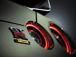 Beneath the hood, GT-R T-spec customers will find the legendary twin-turbo V6 engine, VR38DETT, hand-assembled with a 3.8-liter displacement and delivering 565 horsepower. This powertrain is paired with a six-speed sequential transmission and a dual-clutch system, complemented by the unique GT-R ATTESA E-TS rear-wheel torque vectoring system.