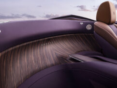 The Rolls-Royce Amethyst Droptail pays tribute to the materials and handcraftsmanship cherished by the client and his family. It includes a sample of light, open-pore palisander wood provided by the client himself.