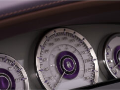 Vacheron Constantin collaborated closely with Rolls-Royce Motor Cars to ensure perfect harmony between the watch’s shape, materials, and colors within the car’s interior. The instrument dials incorporate Amethyst-hued accents and partially polished, mirror-finished hands echoing those of the timepiece. The watch is mounted on a white gold plate adorned with a hand-guilloché pattern.