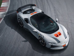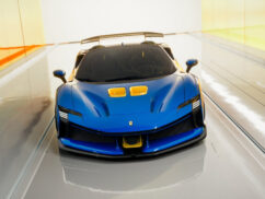 The SF90 XX Spider allows the Ferrari Styling Centre to implement modifications to the rear end, creating a distinct and instantly recognizable silhouette. The iconic flying strut seamlessly blends with the sharply pointed front profile, visually extending the car’s length forward and giving it a completely different character compared to the SF90 XX Stradale.