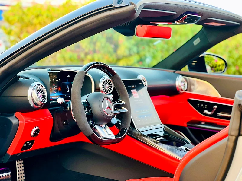 IDEAL CARS LLCMERCEDES BENZ SL 55 AMG V8 4L | BRAND NEW | TWIN TURBO PREMIUM | GCC SPECS | YEAR: 2024 | WITH FULL-SERVICE CONTRACT KMS: BRAND NEW YEAR: 2024 • Engine: 4.0 L twin-turbo V8 (3982 cc) • Max Power: 476 hp • Max Torque: 700 Nm • Drive Type: AWD (“4MATIC+”) • 0-100 km/h (claimed): 3.9 s • Transmission: 9-speed automatic • Top Speed: 295 km/h • 21-inch alloy wheels • Seating capacity: 2 seats • Fabric soft-top that opens/closes in ~15 seconds • large display panels • MBUX interface • optional Burmester audio • Nappa leather • AMG Performance Suspension • high-spec brakes • Active Lane Keep Assist • adaptive cruise ABOUT US. IDEAL CARS was founded in 2006, with a clear vision to build a trusted network of loyal and satisfied clients by delivering exceptional service and the highest standards in the automotive industry. Our top priority has always been to understand the unique needs of our customers, provide best-tailored solutions, and create memorable experiences that go beyond expectations. Over the years, Ideal Cars has grown into one of the most respected and renowned automobile dealerships in Dubai, a name synonymous with quality, trust, and excellence. OUR SERVICES. We Buy - Sell - Trade In - Procurement - Consignment "FINANCE" Affiliated with most of the banks in the UAE. Special finance rates available with 'Emirates Islamic Bank & ADCB', ADIB "FOR MORE INFO" Follow us on: Instagram - https://www.instagram.com/idealcars.llc/ Facebook - https://www.facebook.com/idealcarsllc or get in touch with our experts: Haseeb - 0501568003 Mubashar - 0508464198 Drive Quality, Drive Confidence Trusted Wheels, Honest Deals Al Awir, Used Car Complex, Showroom No 42, Dubai, UAE Viewing times are: 9 AM to 1:30 PM & 4:30 PM to 9:00 PM – MONDAY TO SATURDAY, SUNDAY CLOSED
